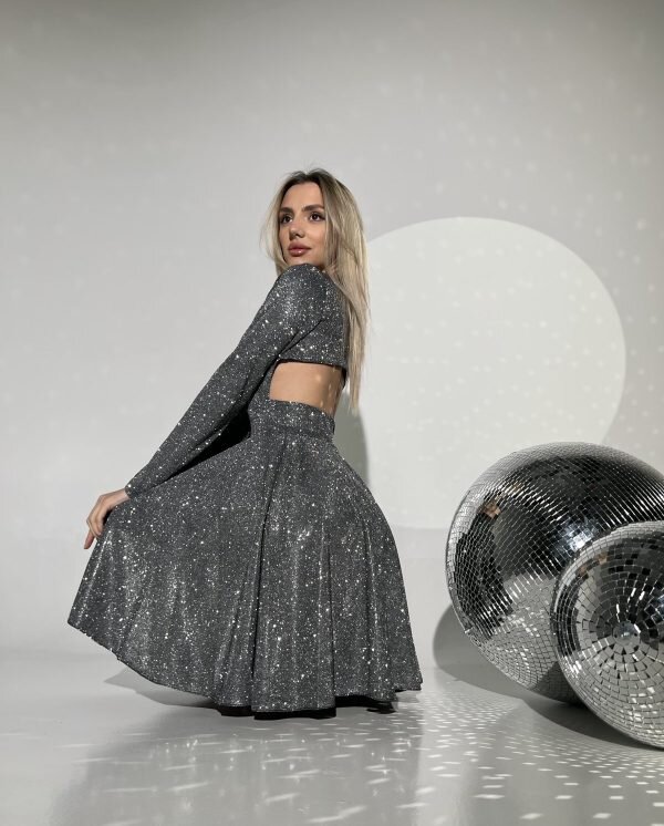 В 2024 году остается в тренде металлик, но теперь он более «спокойный». Вы точно не ошибетесь, если выберете выпускное платье нежного перламутрового оттенка. Для создания фактуры с аккуратными переливами не обязательно покупать наряд из шелка или атласа – эффектный блеск придадут прозрачные пайетки или мелкие блестки. И обязательно должен быть динамичный декор, например, бахрома или перекрученные узлы.