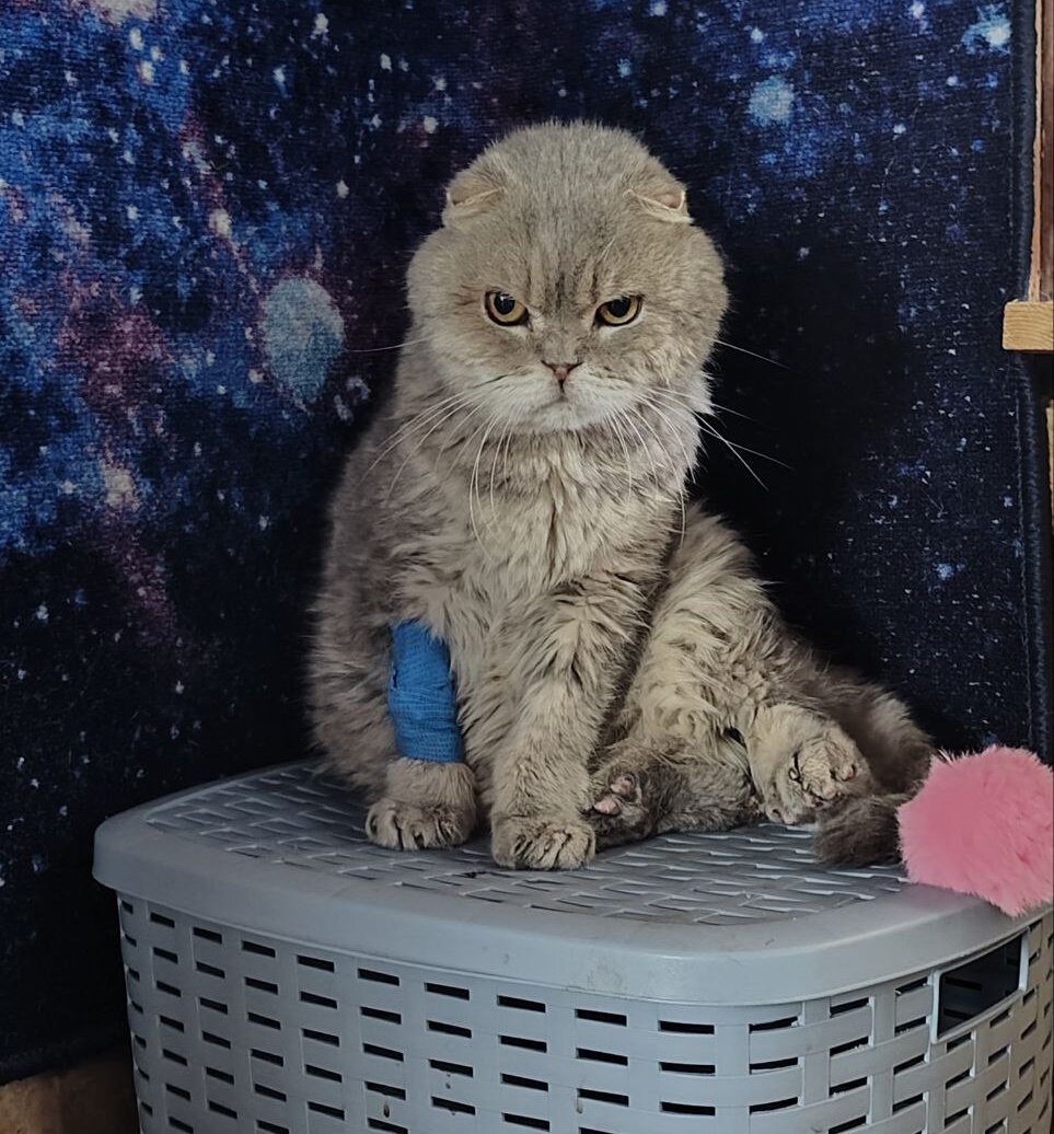 Новости про Вислоушика. Пришли анализы крови. АСТ и ЛГД часто повышаться при распаде клеток и воспалении. Его состояние обусловлено обострившейся ОХД. Почечные и печеночные показатели хорошие. В целом кровь не плохая. Кошки очень чувствительны к боли, поэтому нужно искать новые методы обезболивания. По ночам будут просто капать его растворами с Дюфолайтом для поддержания состояния и хоть какй-то профилактики от постоянного приема НПВС. Остеохондродисплазия шотланских вислоухих кошек – это передающееся по наследству заболевание, которое характеризуется такими деформациями скелета как короткий, утолщенный и неподвижный хвост и укороченные искривленные конечности. У заболевших кошек появляются признаки хромоты, нежелание прыгать, скованная, «ходульная» походка. Такие затруднения возникают из-за прогрессирующего остеоартрита, который является следствием дефекта развития и дисфункции хряща. ДЛЯ ПОМОЩИ: СБ 5336 6901 6946 5830 на Андрееву В.О. привязана к номеру 89052025005 С ПОМЕТКОЙ "Благот