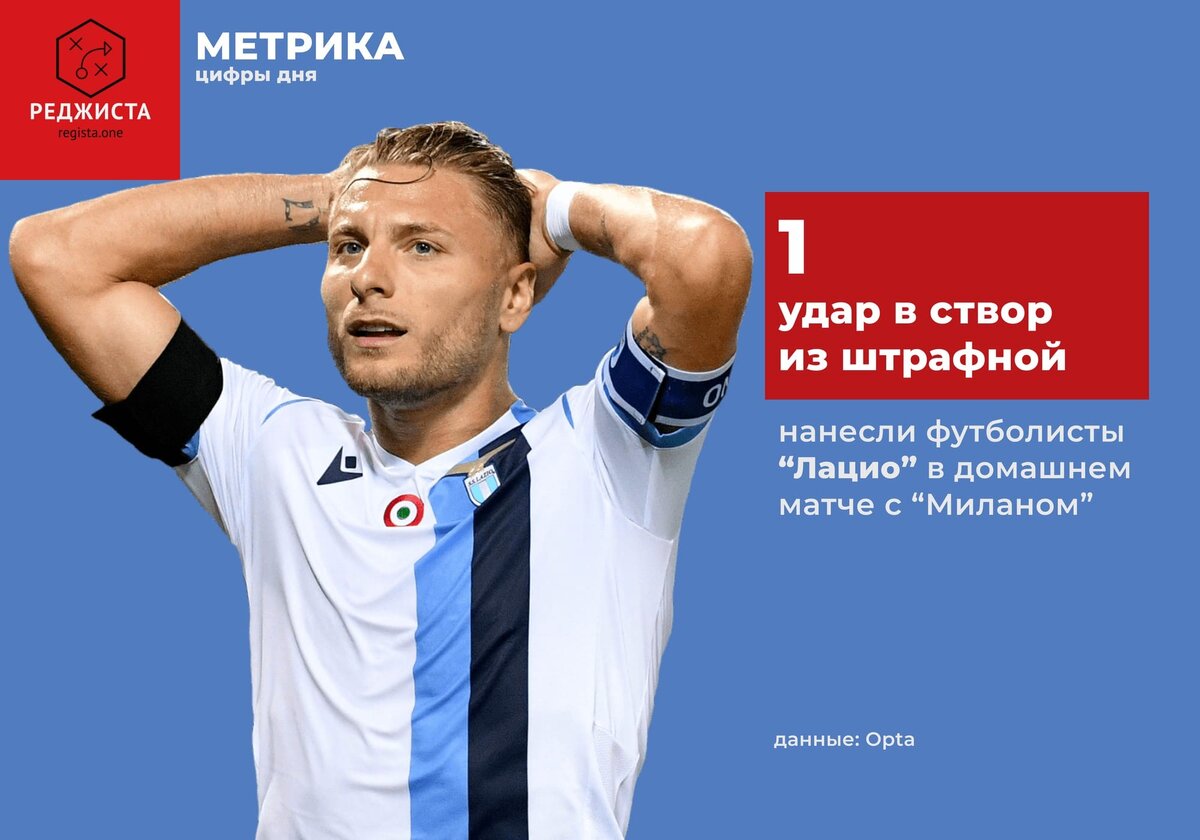 "Лацио" неплохо начал матч и имел явный шанс, чтобы открыть счет, благодаря угловому на 8-й минуте. Однако Весино не смог правильно подставить ногу после скидки Андерсона — мяч вследствие попытки удара уругвайца из вратарской прошел мимо ворот. Проблема римлян на стандартах у чужих ворот известна: команда Сарри занимает предпоследнее место в лиге и по числу ударов, и по xG, а также делит последнюю строчку с "Эмполи" по голам (2). Фактически больше "Лацио" со стандартов за оставшиеся почти 90 минут не извлек. Да и было их немного. "Милан" почти не фолил в своей трети, а после 30-й минуты "Лацио" не заработал ни одного корнера.