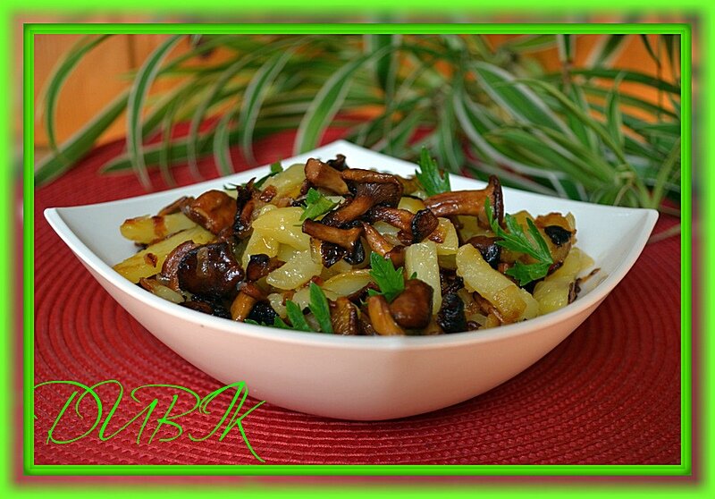 Картошку почистить, порезать брусочками, отправить к лисичкам.