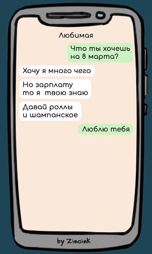 Сегодня я собрал 7 смешных переписок о том, что подарить любимой на 8 марта. Уверен, они вам понравятся и будут полезны). Приятного чтения и отличного настроения.