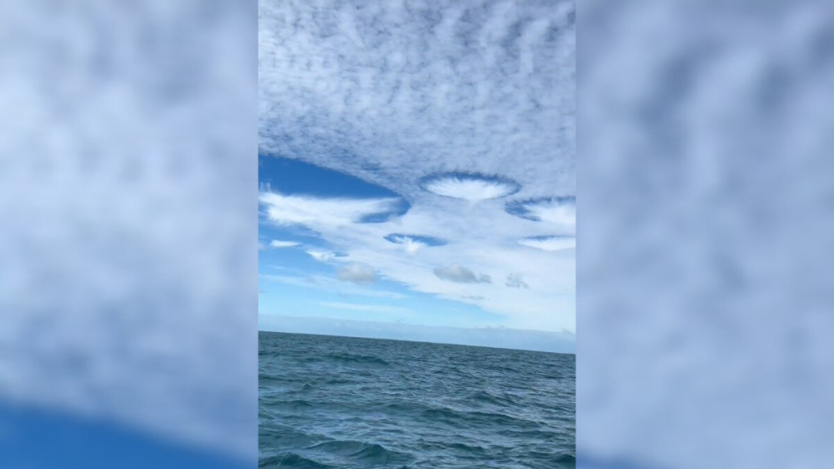 Следы НЛО? Рыбаки сняли на видео гигантские «дырявые облака». В NASA объяснили, что это — Видео
