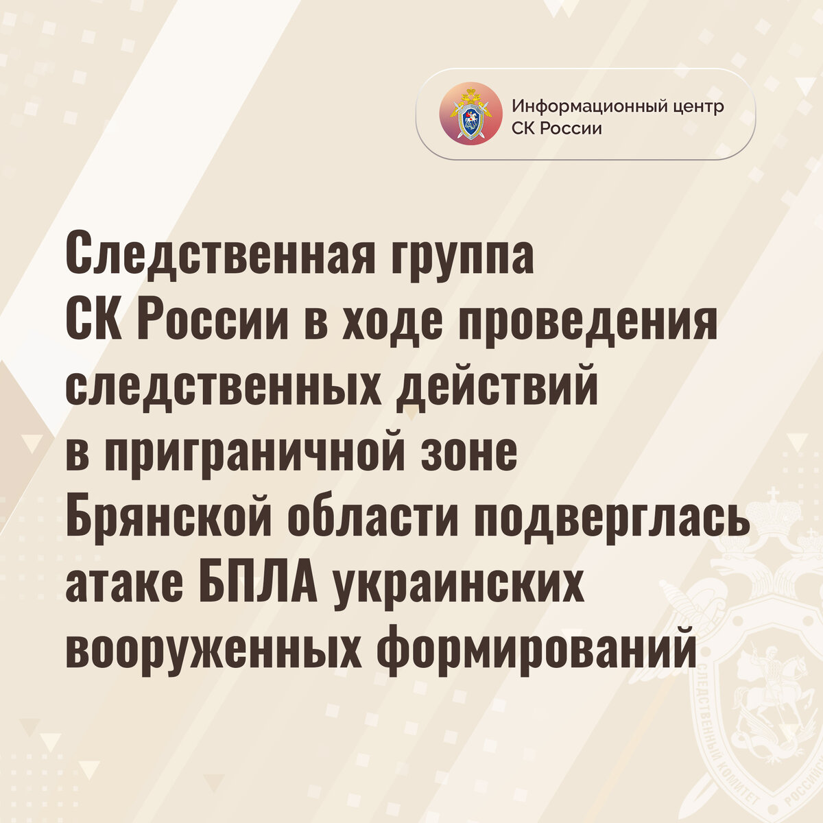 Следственная группа СК России в ходе проведения следственных действий в приграничной зоне Брянской области подверглась атаке БПЛА украинских вооруженных формирований