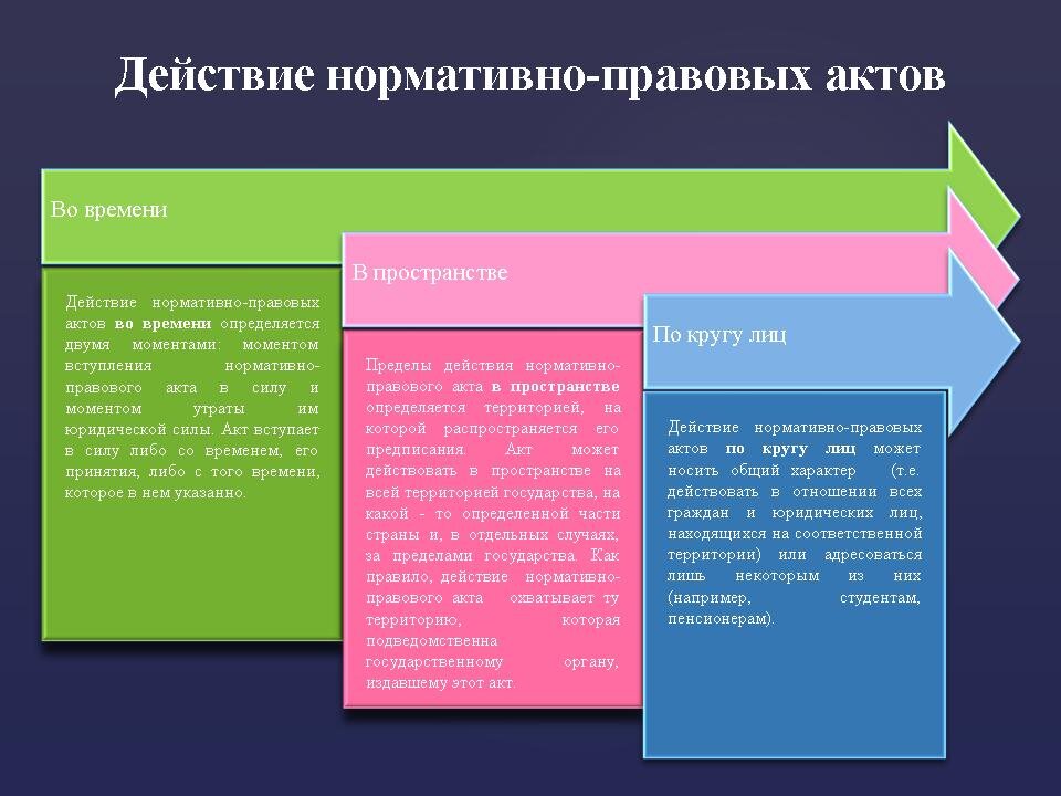 Действие правовых актов во времени, в пространстве и по кругу лиц.