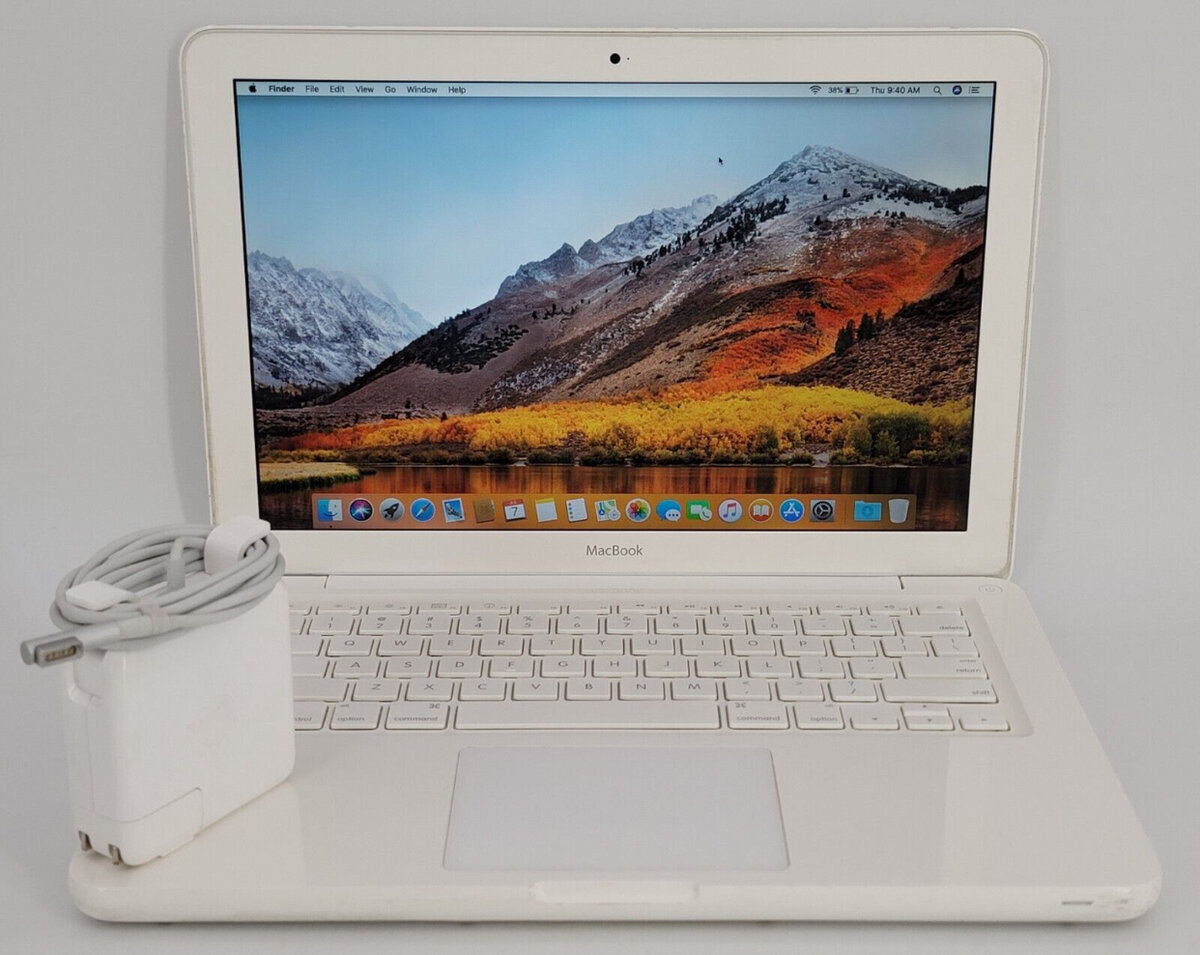 В корпусе из поликарбоната, белый MacBook A1342 2010 года. Двухядерный процессор Core 2 Duo до сих пор справляется с базовыми задачами в таком низком бюджете. Оперативная память стандарта DDR3 до 8 Гб, но есть варианты и на 16 Гб на Mac OS High Sierra (последняя актуальная для этой модели). Также, замена жёсткого диска на SSD добавит старичку заряд бодрости на пару лет.