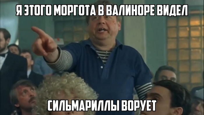 А пока Моргот стремается солнечного света и сидит в своих подземельях, Финголфин топает через лютый северный мороз, согреваясь мыслями о том, как он прокрутит брата на своём мече, а Валар огораживаются от всего мира, Феанор с безумной улыбкой жжет свои же корабли, потому что он знает — в Средиземье для них с Морготом слишком мало места...
