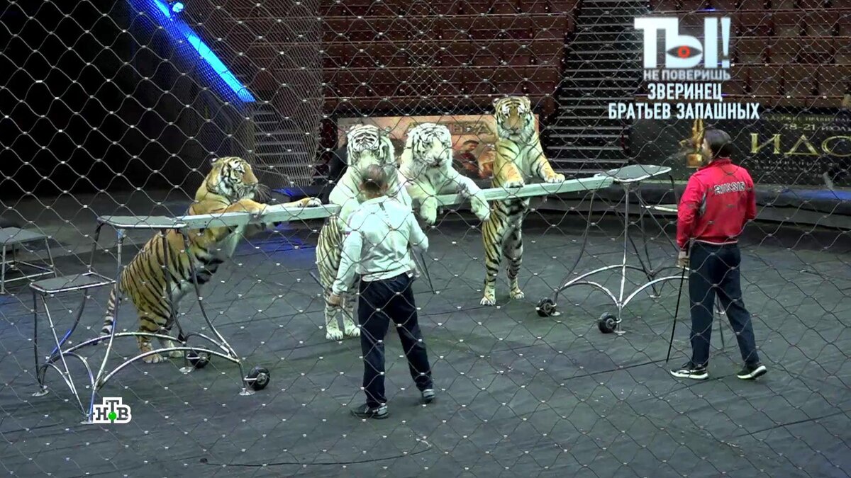[ Смотреть видео на сайте НТВ ] Тигры братьев Запашных ездят на гастроли в специализированных фургонах. Это специально оборудованные 18-метровые фургоны с кондиционерами, с купе, внутри с ними постоянно находятся люди. У животных Запашных есть и свой бытовой райдер — на обед у них говядина, курица и утка. Как сыр в масле катается и шимпанзе по кличке Гермес. У него целая коллекция своей обуви. В свободное от работы время Гермес любит смотреть телевизор, в его апартаментах установлена плазма. Разорились Запашные и на собаку породы бигль, которая составляет Гермесу компанию. По словам дрессировщиков, обезьяны очень привязчивы и не терпят одиночества. А у слонихи Николь два личных помощника. «Это скучающие животные, которые без человека, без компании могут даже умереть», — рассказывают Запашные. Братьев Запашных постоянно обвиняют в жестком обращении с животными. Пару месяцев назад зоозащитники распространили шокирующее видео, на котором Запашные бьют тигров палками и обливают их сильным