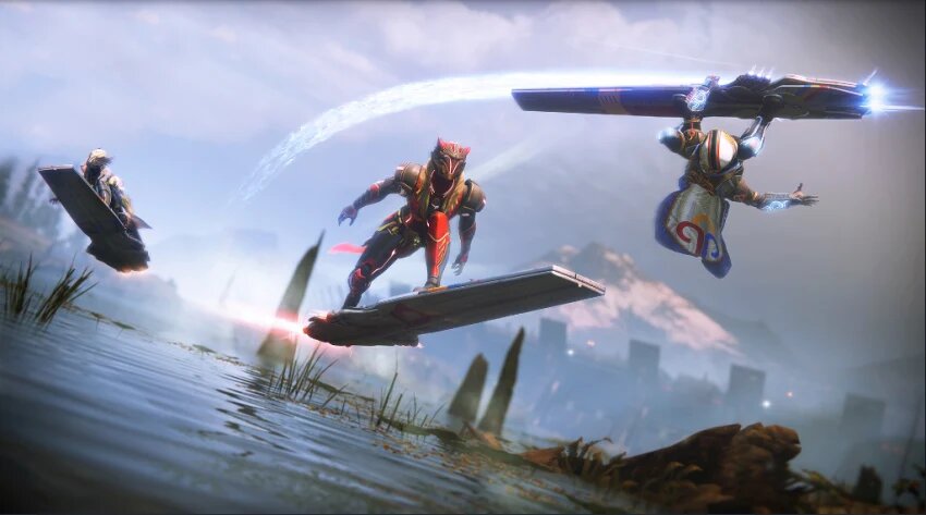 В Destiny 2 появится новый тип транспорта — летающая доска Скиммер, которая позволит игрокам выполнять трюки, скользить по перилам или просто летать по городу.