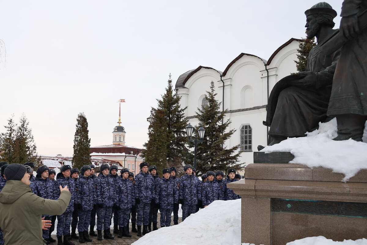 Для военнослужащих, выполняющих задачи по охране общественного порядка и обеспечению общественной безопасности в период проведения в г. Казани международного мультиспортивного турнира «Игры будущего», организовали экскурсии по Казанскому кремлю. Военнослужащие одной из воинских частей Приволжского округа Росгвардии, участвующие в обеспечении безопасности мультиспортивного турнира «Игры будущего» в г. Казани, проходят военную службу по призыву и были призваны из разных регионов России. Знакомство с историей Казанского кремля стало для них увлекательным и познавательным мероприятием. Пройдя через величественные стены древней крепости, экскурсанты погрузились в мир истории, культуры и архитектурного великолепия. Росгвардейцы узнали о тысячелетней Казани и истории создания мечети Кул-Шариф, возведённой к тысячелетию города, с интересом осмотрели здания Пушечного двора, построенного в середине XVIII века для размещения оружейного завода и арсенала. Росгвардейцы посетили Благовещенский собор