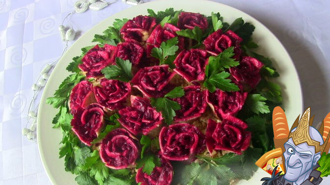 После этого салата она сказала да! (Салат "Розы") В этой статье мы познакомимся со способом приготовления удивительно-красивого салата "Розы". Ингредиенты: Куриная грудка отварная (или копченая) - 1 шт.
