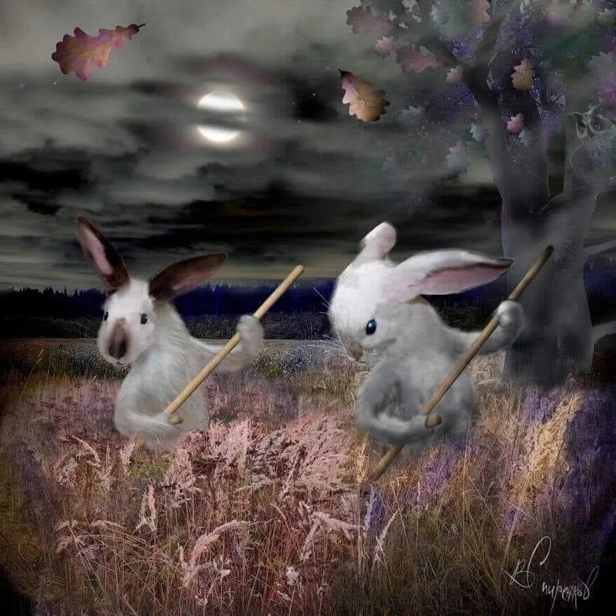 Вы мне напомнили не кота, а зайца хитрого косого, косившего в полночь "трын-траву" на поляне, поющего песню свою.