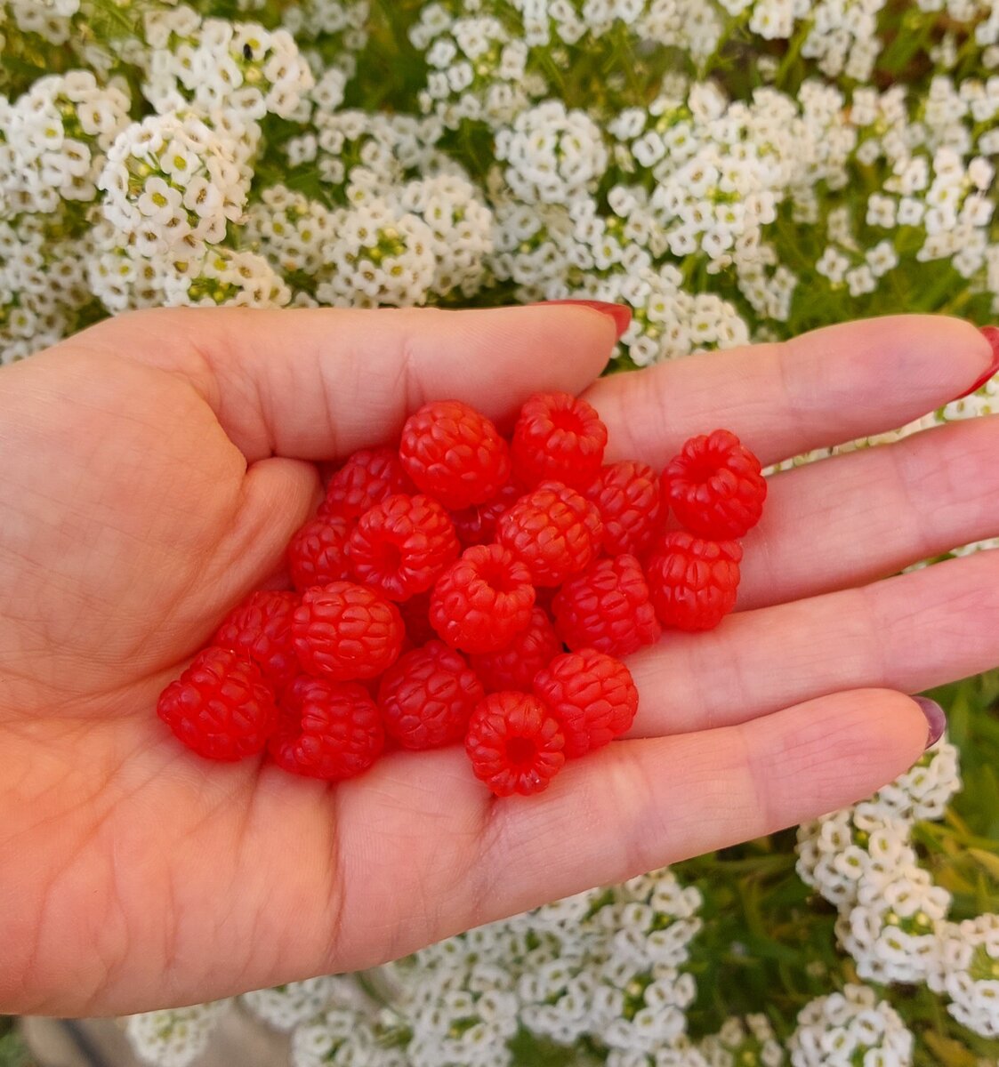 Добрый день! Предлагаю посмотреть фото-урок по лепке малины из полимерной глины. Нам понадобится полупрозрачная полимерная глина красного цвета. Марка глины может быть любой) Раскатываем из глины колбаску, толщиной примерно 3мм. Нарезаем колбаску на отрезки от 2 до 4мм длиной. Примерно) Катаем шарики. Далее нам понадобится инструмент с шариком. Я использую бусину, надетую на зубочистку. Бусина примерно 5мм в диаметре. Делаем первый ряд ягодки. Второй ряд делаем в шахматном порядке, по отношению к предыдущему ряду. Третий ряд. Уже становится похоже на малину, правда?) Далее, иголкой делаем насечки на каждом зернышке ягоды. На этом можно остановиться, но... Я продолжаю дорабатывать ягоду. Ножом продлеваем насечки почти на всю длину зернышка. Вот так мне нравится больше) Снимаем ягоду с бусинки. Если не снимается, то можно запекать на бусине, главное чтобы бусина не расплавилась при запекании. Отправляем в печку) Далее нам понадобится термоклей. Можно заменить на гель-пластику. Смазываем