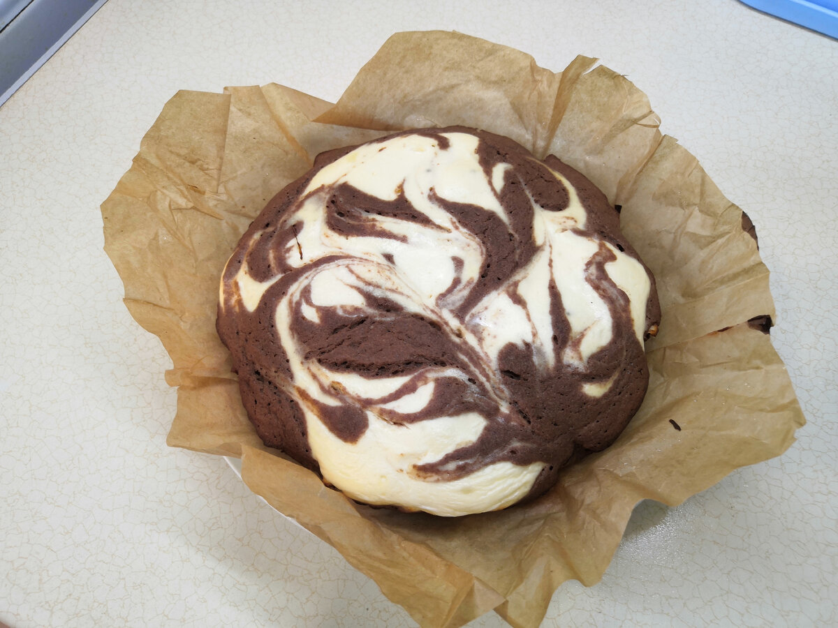 Одна основа в этом кексе готовится с использованием яблока, а вторая из мягкого творога. Получается очень нежная выпечка. Подавать к столу ее надо в теплом виде, когда кекс остынет - он осядет и будет не такой воздушный как сразу после духовки. Ингредиенты: Для шоколадного слоя: Для творожного слоя: 1. Сначала приготовила шоколадный слой. Яблоко очистила, нарезала и положила в блендер. К нему отправились яйца и какао. Пробить блендером. Можно все ингредиенты загрузить, если объем блендера позволяет. Я перелила массу в глубокую миску, добавила все оставшиеся ингредиенты и размешала до однородности венчиком. 2. Для творожного слоя смешала венчиком мягкий творог яйцо, кукурузный крахмал и подсластитель. 3. Форма у меня 20 см. На бумагу для выпечки сначала выложила шоколадный слой. Затем столовой ложкой выложила творожную массу сверху в виде островков. Затем другим концом ложки сделала произвольные узоры проводя из шоколадной массы в творожную и наоборот. 4. Запекать в духовке 30-40 м