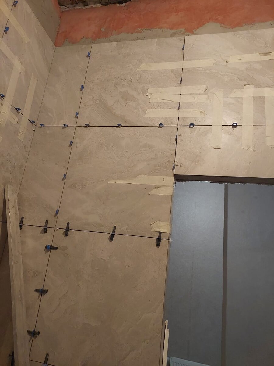 Стройка у брата была совершенно без присмотра, а приближался ответственный момент начало укладки плитки. Ну как я могла удержаться и не поехать контролировать? И не зря. Все подготовительные работы были закончены, а их было не мало. Прежде всего надо было исправить все косяки предыдущих "специалистов". Брат нанимал абы кого, то подённые рабочие, то какие-то алкаши, главный критерий был это цена вопроса. У Димы было стойкое убеждение, что не важно сколько платишь, всё равно накосячат. Уж даже не знаю, почему на последнем этапе он решил изменить подход и взял моих узбеков. Штукатурка, причём гипсовая, была сделана слоем от 3 до 7 см, а может где и побольше, на газоблоковых перегородках была сделана металлическая сетка, маяки не вынимали, отклонения от вертикали были до 2 см, даже на небольших санузлах диагонали отличались на 4 см. Да ещё местами штукатурка бухтела. Вздохнули, договорились о цене вопроса и приступили к работе. Вынули маяки, переделали штукатурку, где она практически не