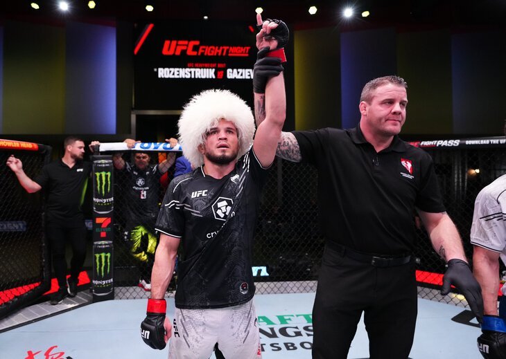 Умар идет за титулом. На турнире UFC Vegas 87 брат Хабиба Умар Нурмагомедов встретился с новичком лиги Бекзатом Алмаханом. Бой чуть не закончился сенсацией: чем Алмахан удивил преемника Хабиба? Брат Хабиба вернулся после травмы, чтобы пойти за титулом. Соперник – нокаутер-дебютант из Казахстана Умар Нурмагомедов – непобежденный брат Хабиба, который идет 13-м в легчайшем дивизионе UFC. Он выиграл в лиге все четыре прошлых боя и мчится к титулу с общим рекордом 16-0. Новый соперник – Бекзат Алмахан, дебютант из Казахстана. Почему Умар дерется с новичком, хотя сам в топ-15? Менеджер Али Абдель-Азиз объяснил: все отказываются от боя с Умаром, а сам он не хочет простаивать. До этого планировался поединок с Кори Сэндхагеном, но сорвался из-за травмы плеча Умара. Нурмагомедов еще не дрался с топами дивизиона, но уверенно финишировал трех соперников из четырех. Среди них – казахстанец Морозов. Он принял ислам и бросил ММА, а на смену в дивизион пришел Алмахан – другая молодая звезда из Казахст