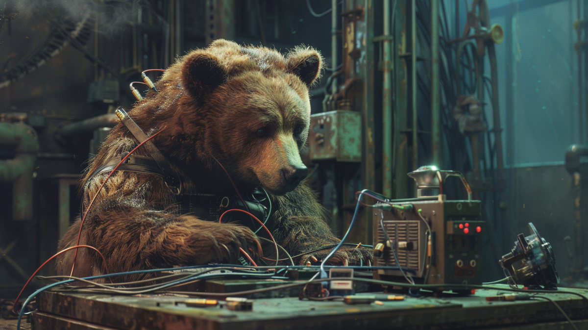 В тихой долине жил медведь по имени Валера, который внезапно решил изменить свою карьеру и стать электриком. На первый взгляд, это казалось странным, учитывая, что медведи обычно предпочитают другие профессии, такие как охотник за медом или собиратель ягод. Но Валера был не как все медведи! Когда Валера пришел на работу на электрозавод, его начальник, бывший слесарь-ремонтник сантехники по образованию, даже не задался вопросом, как медведь может быть электриком. В конце концов, его устроили по "родственным" связям, и начальник не хотел терять этого преимущества. В первый же день работы Валера занялся ремонтом системы электроснабжения. Однако, вместо того чтобы правильно подключить провода, он перепутал транзисторы и обесточил весь завод. Завод замер в полной темноте, а медведь уверил начальника, что это всего лишь временная авария и все идет по плану. Вместо того чтобы разобраться в ситуации, начальник, убежденный в своей безупречной компетенции в области электрики, поверил Валере и да