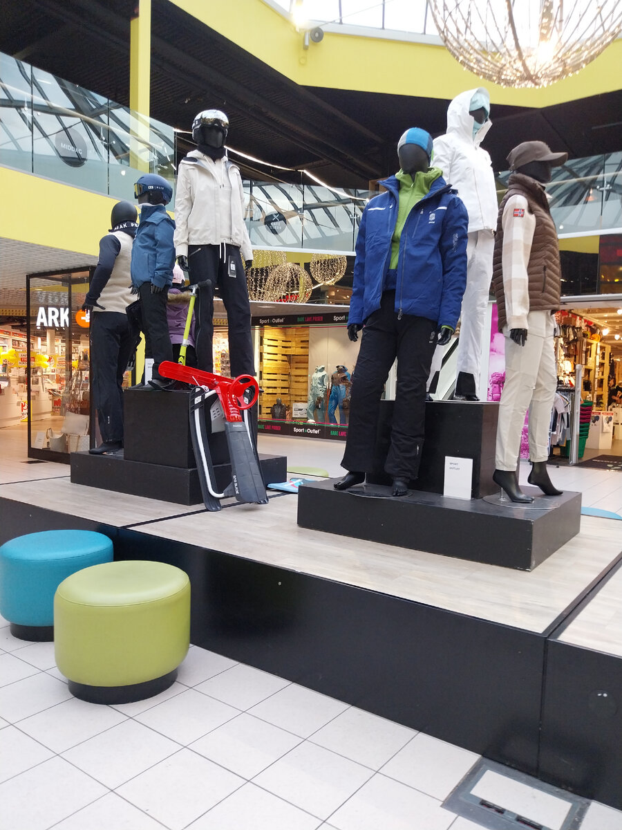 Витрины и покупатели норвежского торгового центра АМФИ. Начало марта