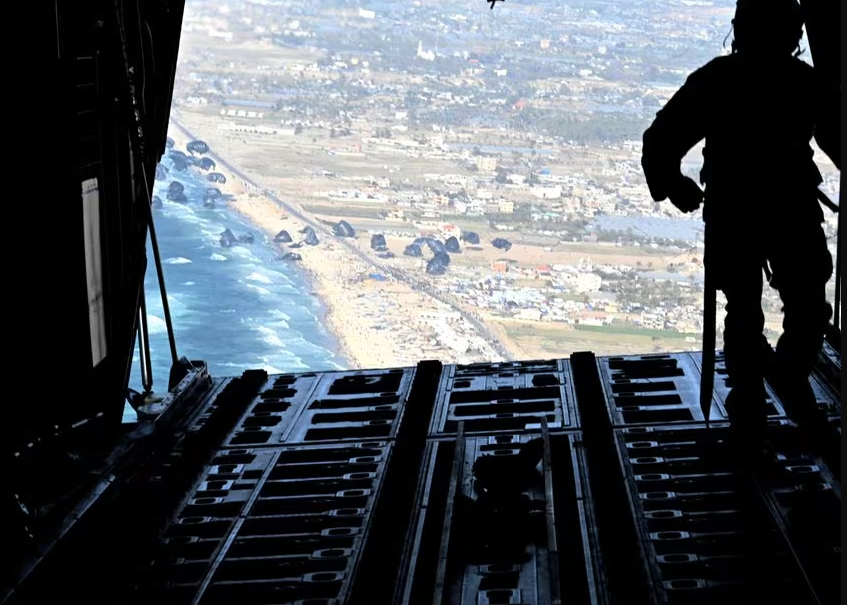 США сбросили гуманитарную помощь в сектор Газа с самолётов C-130 Hercules