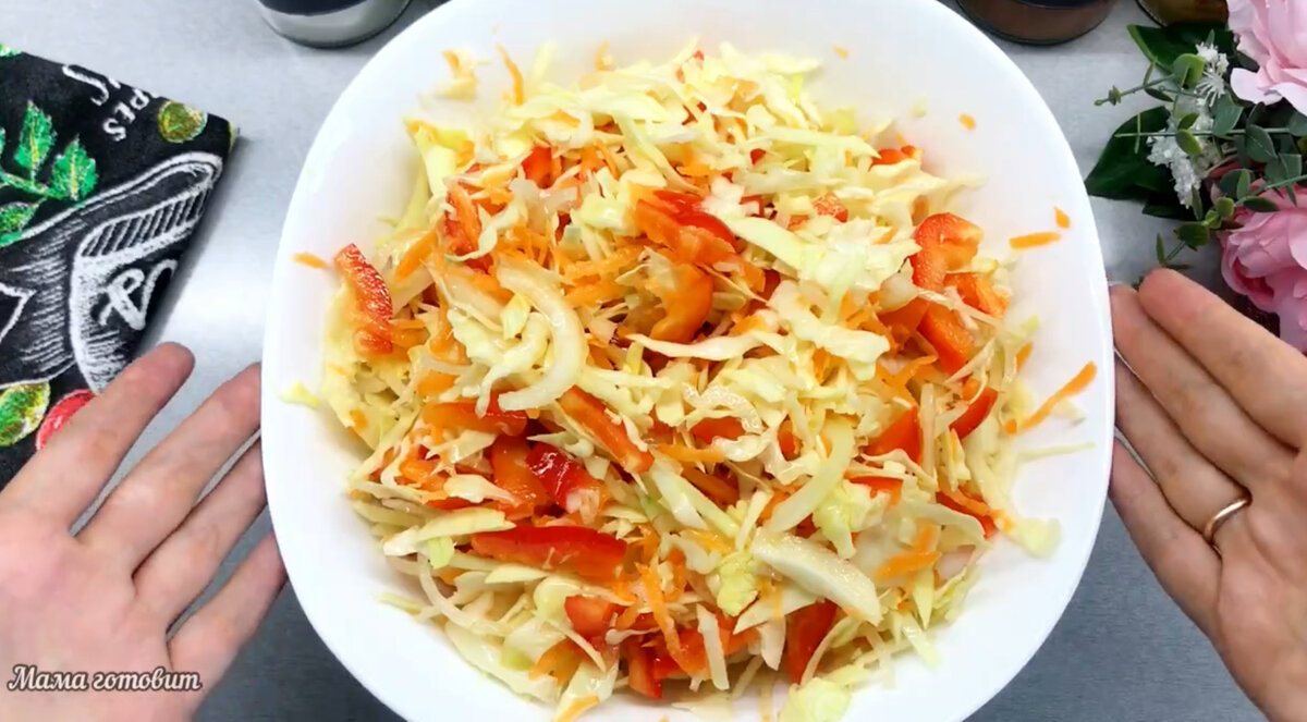 Всем привет, мои дорогие! Сегодня хочу поделиться своим рецептом маринованной капустки. Очень вкусная и хрустящая, она станет отличным дополнением к вашему столу. Что нужно: - 1 кг капусты - 1-2 болгарских перца - 1-2 моркови Маринад: - 500-600 мл воды - 1 ст л соли - 4 ст л сахара - 6 ст л 9% уксуса - 50-70 мл растит.масла Что делаем: 1. Тонко нарезаем капусту и болгарский перец. Морковь трём на крупной тёрке. По желанию можно добавить нарезанный горький перец. Все хорошо перемешиваем. 2. Вливаем в сотейник воду, добавляем соль, сахар, растительное масло и доводим до кипения. А пока, слегка придавливая, раскладываем капусту по баночкам. 3. После закипания снимаем маринад с огня, добавляем уксус и горячим маринадом заливаем капусту в банках. Закрываем крышками, оставляем до остывания. 4. Отправляем в холодильник часов на 8-10. Готово! Маринованная капуста - это не только вкусное, но и полезное блюдо. Она богата витаминами и минералами, которые так необходимы нашему организму. Кроме