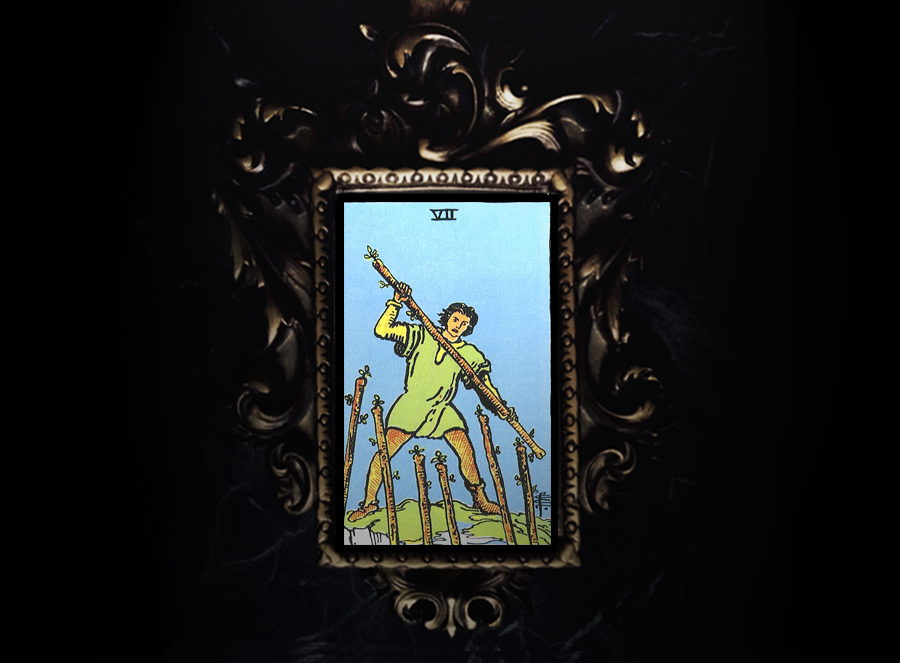 Семерка жезлов также является сигнификатором человека, не готового к отношениям, слишком придирчивого и высокомерного, предвзятого к противоположному полу. Человек агрессивно отклоняет любые попытки привлечь его внимание. Всех потенциальных кандидатов для отношений он заранее воспринимает как недостойных, нижестоящих, либо опасных, покушающихся на его свободу. Противники героя безлики — безлики для него и представители противоположного пола, которые «все одинаковые и хотят от только одного».