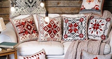 Умеете вышивать крестиком, тогда эта статья для Вас! Посмотрите какая прелесть может украсить Ваш диван - ведь такие вышитые диванные подушки настоящее произведением искусства! Обычно такие подушки вышивают нитками сложенными в 4 или 6 слоев мулине... ... а также можно использовать тонкие шерстяные нитки. Вот рисунки очень похожи, но сменилась расцветка и вид совсем другой))) Такие норвежские узоры хорошо выглядят не только на теплых свитерах, но и вышивке тоже))) Что еще привлекает в таких подушках, это то, что цвета вышивки можно подобрать под свой интерьер! Эта схема немного отличается от рисунка на подушке, но для тех кто занимается вышивкой рассчитать нужный вариант труда не составит. Чем крупнее канва, тем больше размер подушки получается. Вот опять фокус со сменой цвета))) И в заключении - ловите еще несколько схем для вышивки! Надеюсь, что эти идеи Вам пригодятся - вышивайте с удовольствием! Самый легкий способ сшивания блока в пэчворке - "Диагональные полосы" и посмотрите 2 в