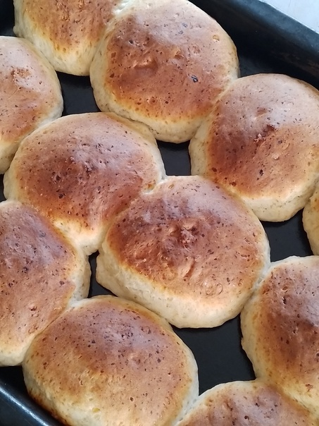 Были у меня остатки творога, грамм 400, я их перебила блендером в однородную массу. Добавила 1 ст сахара, 1 ст молока, 0,5 ст масла растительного. Всё перемешала. Сюда же добавила 1 ч.л. гашёной уксусом соду и просеяла муку. Муки ушло примерно 5,5 ст. Вымешала хорошо тесто, сформовала из него круглые булочки и выложила их на смазанный маслом противень. Выпекала в духовке при 180 градусах до золотистого цвета.