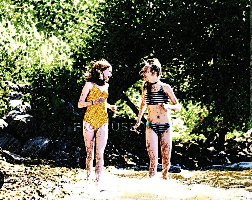 Через двадцать минут девочки вырядились в материнские купальники, подвязав на плечах лямки. А Жанка еще и на животе собрала и брошкой заколола, чтобы не свисал.