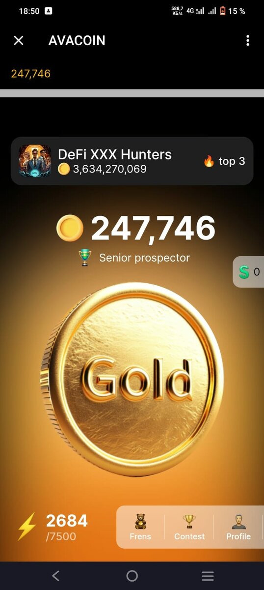 Как заработать в Telegram, просто тыкая на экран 1 грамм золота или 70$ по курсу. Читайте Здравствуйте! Я хотел бы рассказать о новом боте телеграм AVACOIN. В этой публикации я расскажу вам сколько можно заработать монет и можно ли их заработать вообще. Сколько нужно ждать первого вывода денег, и можно ли их вывести когда ни будь. Опережая события хочу сказать что вывод денег уже сделан и он достаточно прост в обращении. Ссылку на бот AVACOIN а также на сам сайт, оставлю в конце. Не буду отнимать ваше и мое время и перейду сразу к расчетам. За 24 часа Avacoin дает добыть 7500 монет ( если это можно назвать добычей, просто нажимаешь по кнопке на экране смартфона пока энергия не закончится ). Минимальный вывод случиться когда вы наберете 400000 монет. Эти 7500 монет, на момент написания статьи добывались путем нажимания кнопки на экране смартфона за 8-10 минут. Если вы пригласите друзей через специальную ссылку в игре то сможете получать еще ежедневный процент, таким образом увеличив
