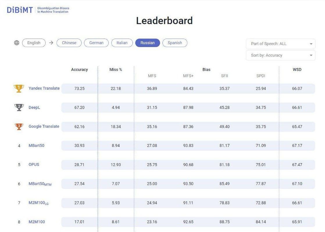 Яндекс Переводчик теперь - король перевода с английского на русский! Он оставил позади Google Translate и DeepL в рейтинге, согласно исследованию, проведенному институтами изучения языка в машинном обучении, Sapienza и SSML Carlo Bo.