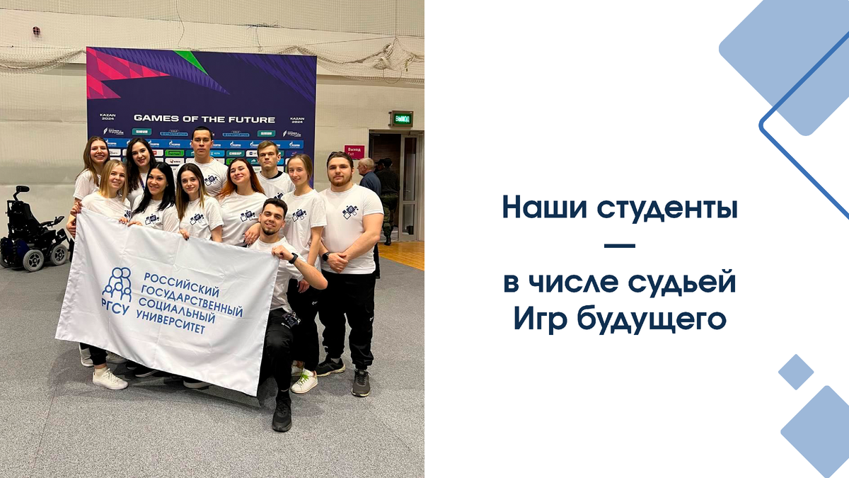 Студенты и преподаватели Медицинской высшей школы РГСУ стали судьями в дисциплине «Кибатлетика» на Играх Будущего в Казани. Игры будущего — международный мультиспортивный фиджитал-турнир, шоу нового формата, которое объединяет соревнования в физическом и цифровом измерениях. Судьями дисциплины «Кибатлетика» стали студенты РГСУ во главе с Александром Владимировичем Корневым, заведующим кафедрой адаптивной физической культуры, рекреации и междисциплинарной медицины Лечебного факультета. Спортсмены с ограниченными возможностями здоровья из 10 стран — России, Индии, Малайзии, Египта, Ирана, Вьетнама, Саудовской Аравии, Южной Африки, Индонезии, Нигерии — соревновались в командах из 4-х человек. Перед ними стояла задача пройти трассу, используя технические средства реабилитации: открыть дверной замок ключом с помощью протеза, заехать по пандусу и спуститься по лестнице на специальной электрической инвалидной коляске и т.д. Наши ребята работали с командами и объясняли правила дисциплины и пом