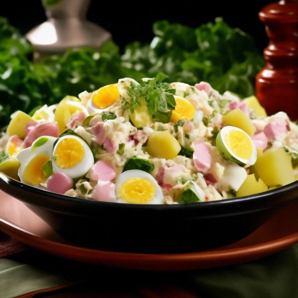 Давайте приготовим салат, который понравится всем! В нем есть картошка, куриные сосиски, огурцы и яйца. Просто, вкусно и сытно – идеальный выбор для быстрого обеда или ужина. Ингредиенты: 350гр куриных сосисок 300гр картофеля 2-3 свежих огурца 3 вареных яйца 2ст ложки майонеза 2ст ложки дижонской горчицы соль, черный молотый перец, базилик по вкусу перепелиные яйца для украшения Приготовление: Картофель отварить в кожуре, охладить и очистить. Сосиски отварить в течение 3-5 минут. Яйца очистить. Яйца, сосиски, картошку, огурец нарезать кубиками, положить в салатник. Посолить. Смешать майонез и дижонскую горчицу. Заправить салат, перемешать. Украсить разрезанными пополам перепелиными яйцами и базиликом. На кухне возможностей для творчества нет предела! Вы можете экспериментировать с ингредиентами, заменять их на свой вкус и проявлять фантазию, создавая уникальные блюда. Помните, что каждое кулинарное приключение – это возможность открыть что-то новое и удивительное в мире вкуса.