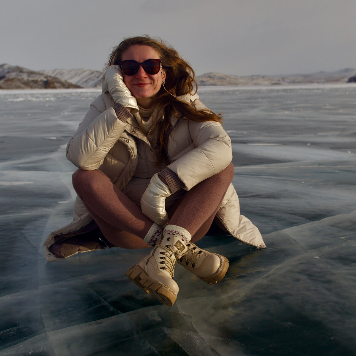 А вообще в этот день мы охотились за воздушными пузырьками. Звучит странно, но на Байкале есть особое место, называемое Малое море - это часть озера отделённая островом Ольхон. И именно там образуются красивые многоуровневые пузырьки, вмерзшие в толщу льда. Мы довольно долго ехали по морозной степи и почему-то это была самая уютная часть поездки. После разглядывания пузырьков, мы забрались на самую высокую точку и стали ждать закат, вместе со стайкой профессиональных фотографов. Мы дождались пока солнце сядет и возвращались уже по темноте.