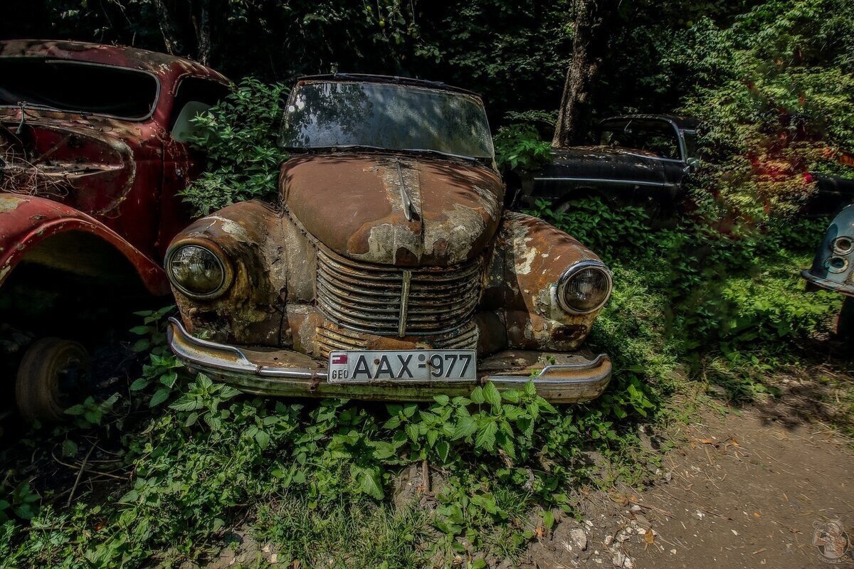 Порой самые интересные места в путешествиях попадаются совершенно случайно. Так и в этот раз, по пути из России в Грузии натасканный, словно таможенный пёс на контрабанду глаз, заметил странную стоянку авто… При ближайшем рассмотрении оказалось, что это не парочка гнилых машин на чьём-то заднем дворе, а несколько десятков машин-призраков. Потрепанные и заросшие автомобили можно было бы назвать заброшенными, если бы не неприметная табличка «музей — вход 20 лари». Вот только, платить было некому — вокруг не было ни души. Окрикнув пару раз хозяев и не получив ответа мы пошли бродить по этому весьма странному месту, которое при всём желании очень сложно назвать музеем… Что такое музей? Это место, где смотришь на экспонаты и узнаешь что-то новое, но ни один из автомобилей не был подписан и при написании материала, мне пришлось искать модели практически каждого автомобиля на кадрах. А модели эти, были весьма редкими. Например: А ещё, здесь было несколько разных моделей "Победы", различающих