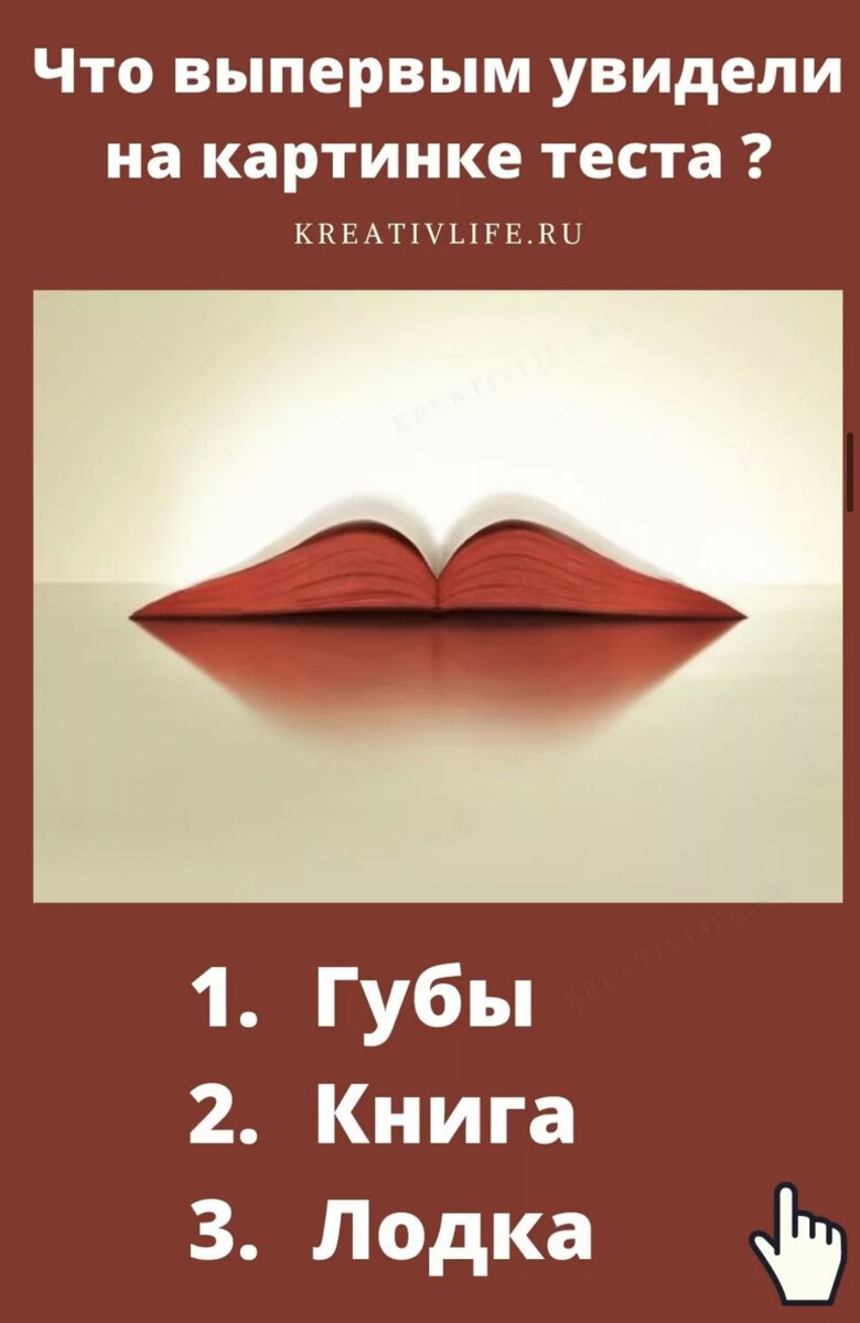 Выбираем , то что первое увидели. Губы Вам не хватает свободы. Ваша жизнь ограничена определенными рамками, и вам не хватает смелости или желания выйти за их границы. Вы слишком сильно зависите от обстоятельств и мнения окружающих: мысль все бросить, уехать, кардинально поменять судьбу изредка приходит в голову, но потом страх пересиливает, и мечты о свободе продолжают оставаться лишь мечтами. Начните с малого: сделайте хоть раз не то, чего от вас ждут, а то, чего вам больше всего хочется. Это и будет первым шагом к свободе – свободе мысли, свободе действий, свободе выбора. Тяжело только начать, дальнейшая борьба со стереотипами и ограничениями начнется сама собой. Книга Вам просто необходим отдых, расслабление, релакс. Речь идет не просто о том, чтобы полежать на диване с книгой в выходные, а о полноценном путешествии, которое позволит отвлечься от рутины и привести в порядок мысли. Вы истощены морально и физически, хроническая усталость негативно сказывается и на делах, и наличной ж