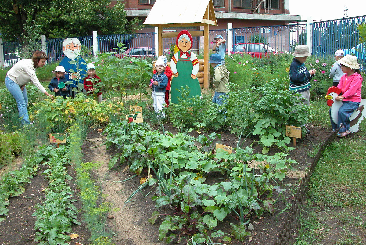Выращивание на грядках младших детей моркови и редиса не исключается. Но обязательно надо иметь овощные культуры, изменения в росте и развитии которых дети могли бы видеть.