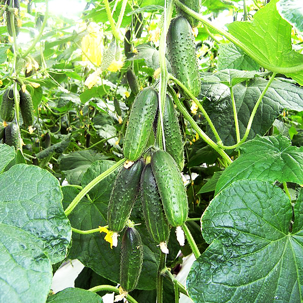 Вот описание производителя: «Раннеспелый партенокарпический гибрид. Вступает в плодоношение на 42-45 день от всходов. Растение умеренной силы роста, средневетвистое, женского типа цветения. Зеленцы цилиндрической формы, темно-зеленого цвета, среднебугорчатые, с белыми шипами, длиной 9-12 см. Масса плодов — 60-90 г. Огурчики сочные, сладкие, без горечи и пустот, превосходны как в свежем виде, так и в консервированном. Плоды лежкие, хорошо транспортируются. Гибрид очень стрессоустойчив, подходит для выращивания на всех типах почв. Устойчив к мучнистой росе (Sf), кладоспориозу (Ccu) и вирусу огуречной мозаики (CMV).»