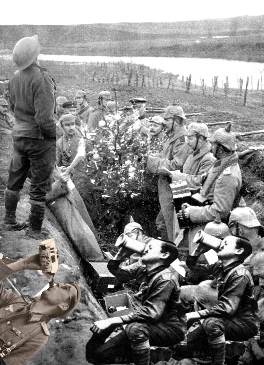 Первая мировая война-событие, повлёкшее за собой гибель колоссального количества людей и изменившее мир. Говорят, сущность людей раскрывается в тюрьме и на войне. И в первый год этого грандиозного сражения был один крайне интересный случай, о котором я хочу Вам рассказать. Западный фронт. Война шла уже 6 месяц, на дворе был декабрь 1914 года, близилось Рождество. Ежедневные перестрелки, звенящие трассеры пуль, гул самолётов….всё это изнуряло участников противоборствующих сторон. По разные стороны окопов находились английские и немецкие войска. Следует сказать, что солдаты получали от родных письма, различный провиант(пирожки), а под рождество и еловые ветки со свечами. Наступило 24(25) декабря, сочельник, на одном из участков фронта англичане, выбросив белый флаг, подошли к немецким окопам, неся в руках рождественские пирожки. На другом участке фронта немцы иллюминировали свои траншеи и предложили спеть для англичан, после чего состоялись встречи с рукопожатиями и обменом подарками.