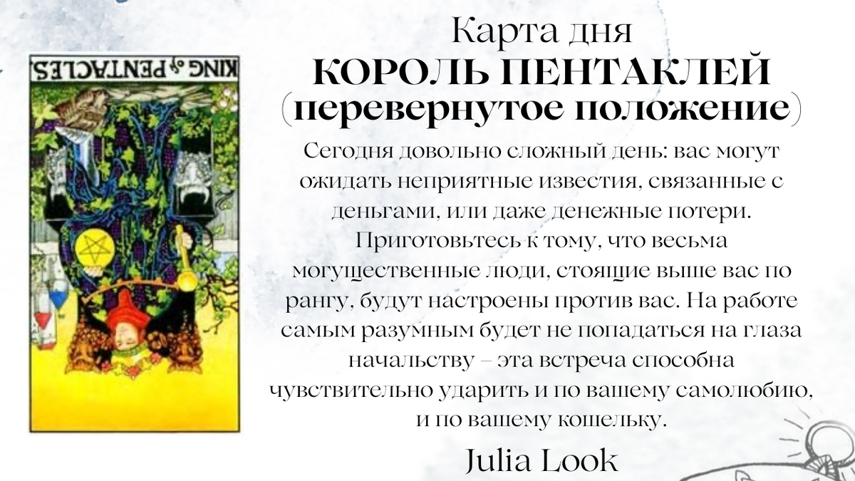 🧧 КАРТА ДНЯ - КОРОЛЬ ПЕНТАКЛЕЙ перевернутый