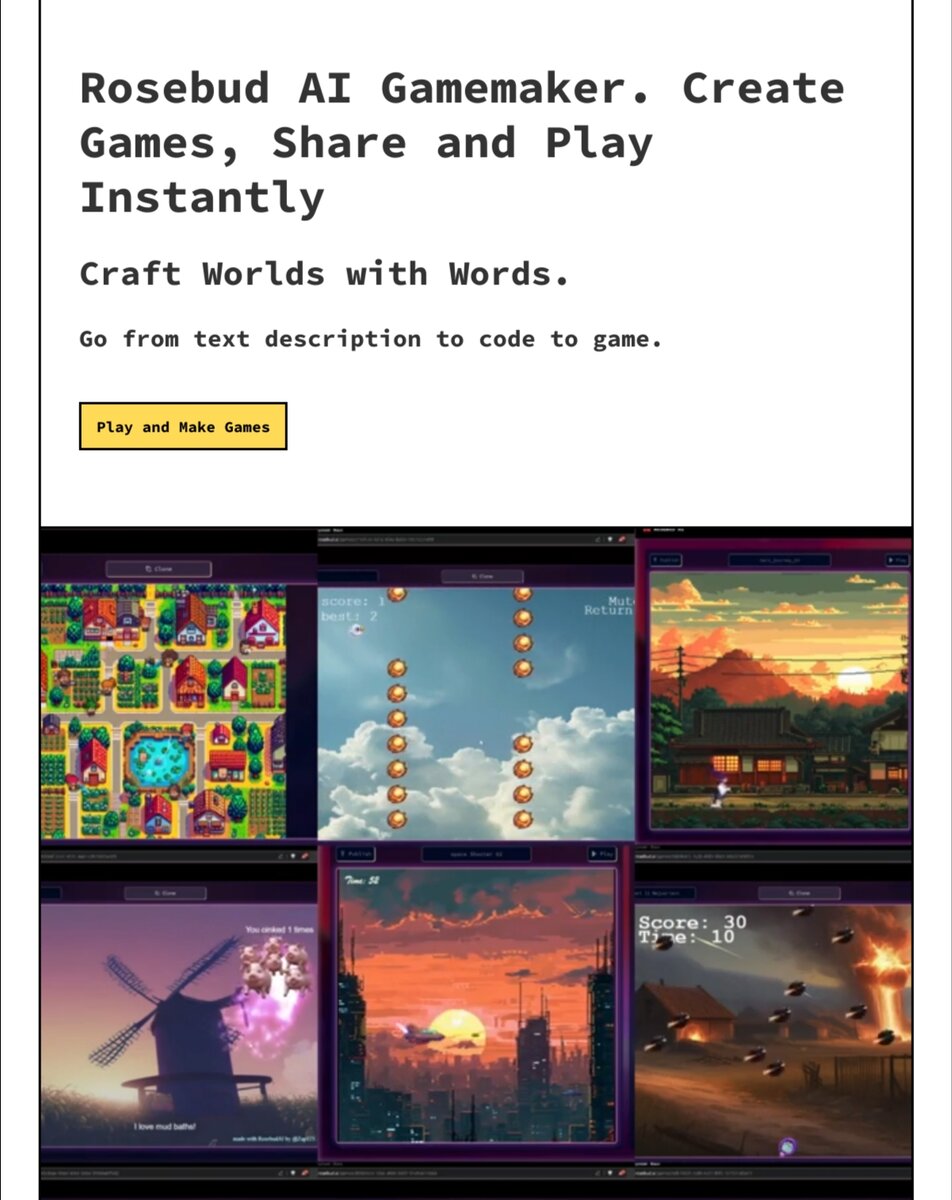 Rosebud нейросеть которая дает возможность создавать игры. Можно попробовать