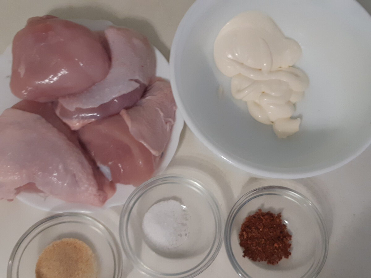 Состав: Приготовление: Курицу режем на порционные куски. У меня одна грудка (режу пополам) и два бедра. Смешиваем майонез (сметана), соль, сухой чеснок, аджику и в этой смеси маринуем курицу. /можно сделать это с вечера, пусть постоит ночь в холодильнике, чтоб вечером не возиться/ Овощи режем на крупные куски. Выкладываем в форму для запекания курицу и овощи. миску где мариновалась курица и остался соус, наливаем 0,5 стакана воды, размешиваем. Поливаем им овощи. Ставим в духовку разогретую до 200 градусов на 1 час. Ужин готов. Можно подавать просто так, а можно с гарниром. Приятного аппетита!!