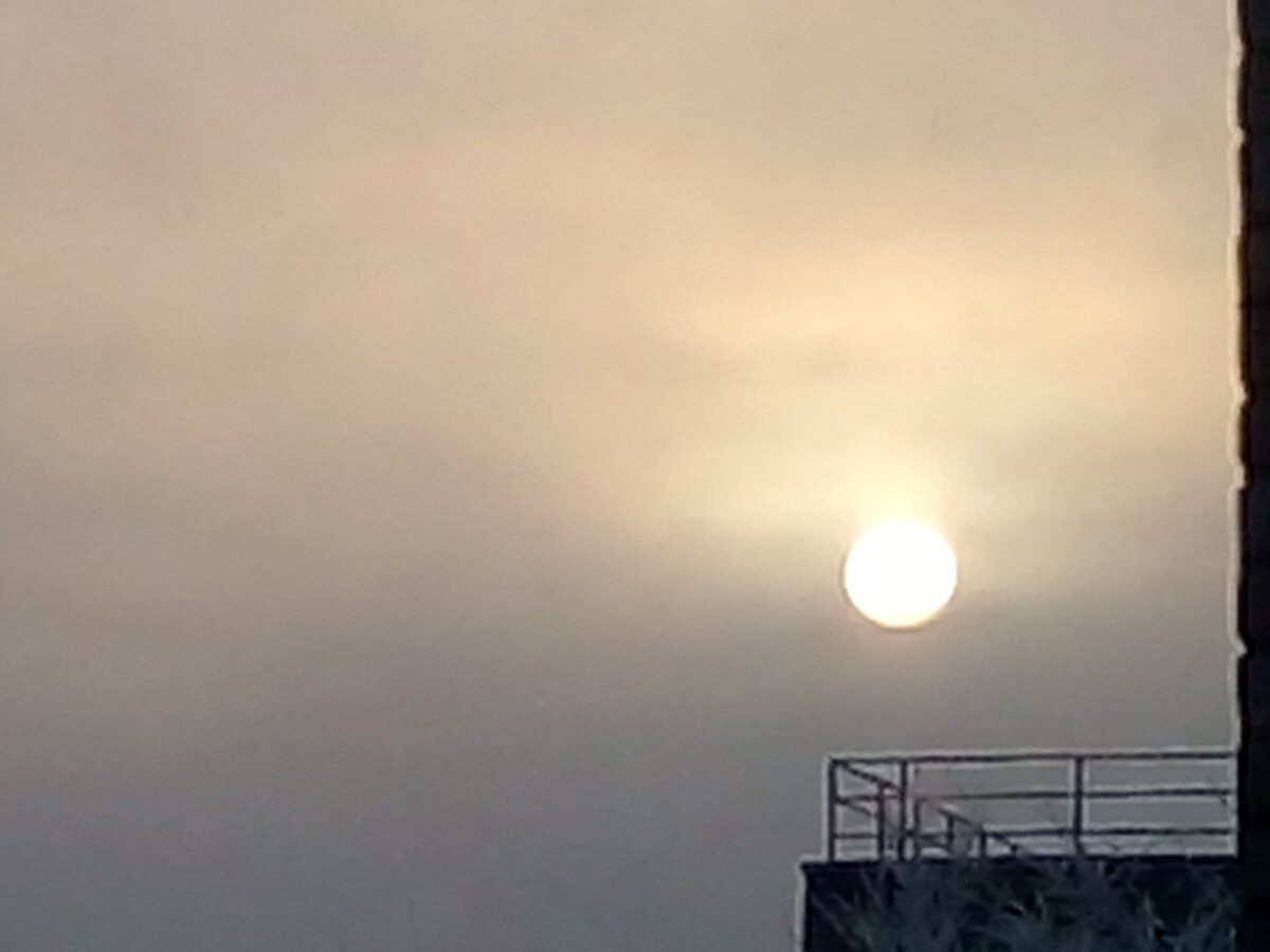 Утром на работе посмотрела в окно, а там картинка - Солнце без лучей! Обычно при такой погоде я наблюдала Солнце с размытыми краями, а в этот раз края были отчётливо видны! А глазам моим совсем не было некомфортно - я глядела на солнце и нисколечко не щурилась!