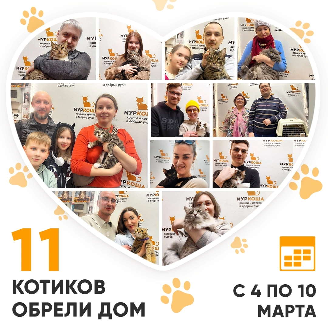 🥳 Итак, за прошедшую неделю домашними и любимыми стали 11 котиков!
