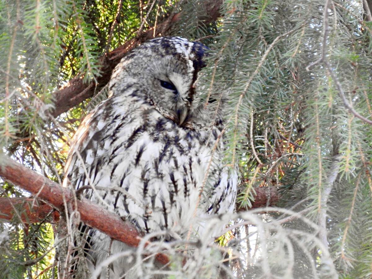 Вот уже несколько лет в парке в Сахарово живёт серая неясыть Маня, за жизнью которой с удовольствием наблюдают местные жители. Сова то пропадала из парка, то возвращалась в него вновь, а в 2022 году даже вывела трёх птенцов. Хроники жизни Мани ведёт тверичанка Дарья Старичкова. Она-то и сообщила о "конфетно-букетном" периоде у совушки, который, правда, затянулся. В то время как другие серые неясыти уже сидят на яйцах, Маня пока и не думает о семейных хлопотах. Оказывается у совы два ухажёра сразу. Каждый вечер слышатся в парке их любовные песни - брачное токование: отчетливо раздается громкое уханье двух самцов и ответное попискивание Мани. А с наступлением утра птицы садятся дневать внутри ветвей ели - сидят до сумерек, жмурятся, почесываются, поправляют друг другу перышки, но дальше любовных игр дело не идёт. Жители надеются, что всё-таки прибавление вк совином семействе будет, не то что в прошлом году. Фото Дарьи Старичковой.