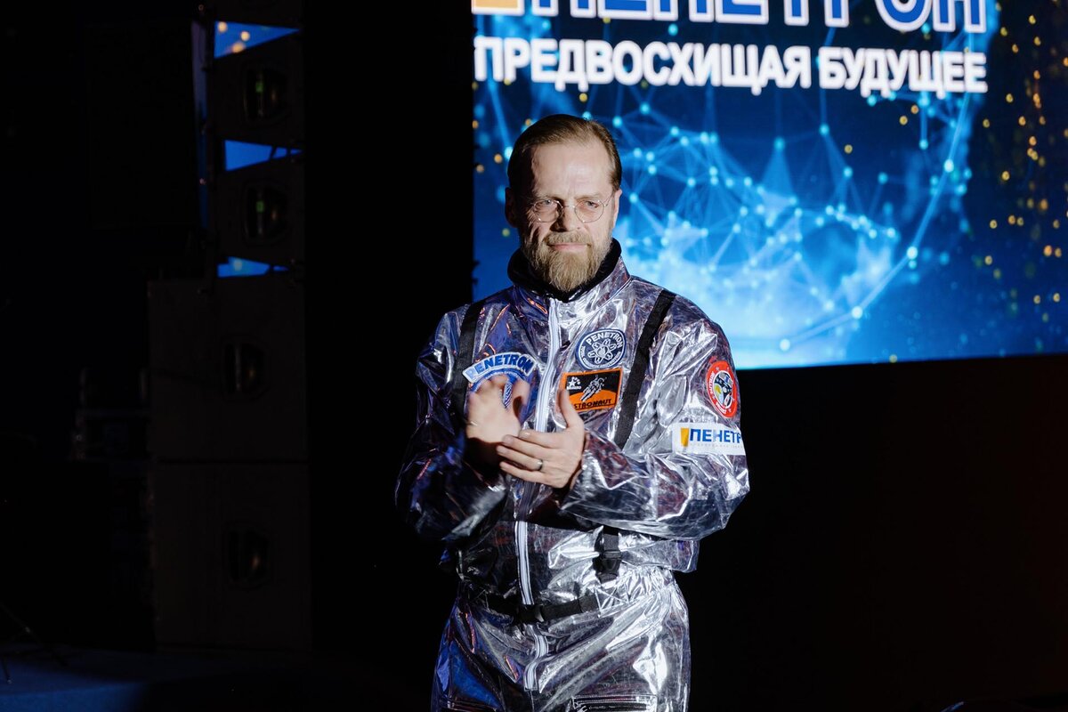 Дилерские конференции мы проводим давно. И каждый раз стараемся придумать что-то новое. Пытаемся встряхнуть аудиторию. Не только интеллектуально, но и эмоционально. Отсюда разная тематика и разные слоганы. В этом году конференция прошла под девизом «Пенетрон. Предвосхищая будущее». И мне надо было соответствовать заявленной футуристической тематике. Это вылилось в небольшой хулиганский видеоролик и вот такой карнавальный костюм, который мы за пару дней до этого заказали на «Озоне» (благослови Господь интернет-торговлю!). Надеюсь, участники конференции посмеялись от души)))