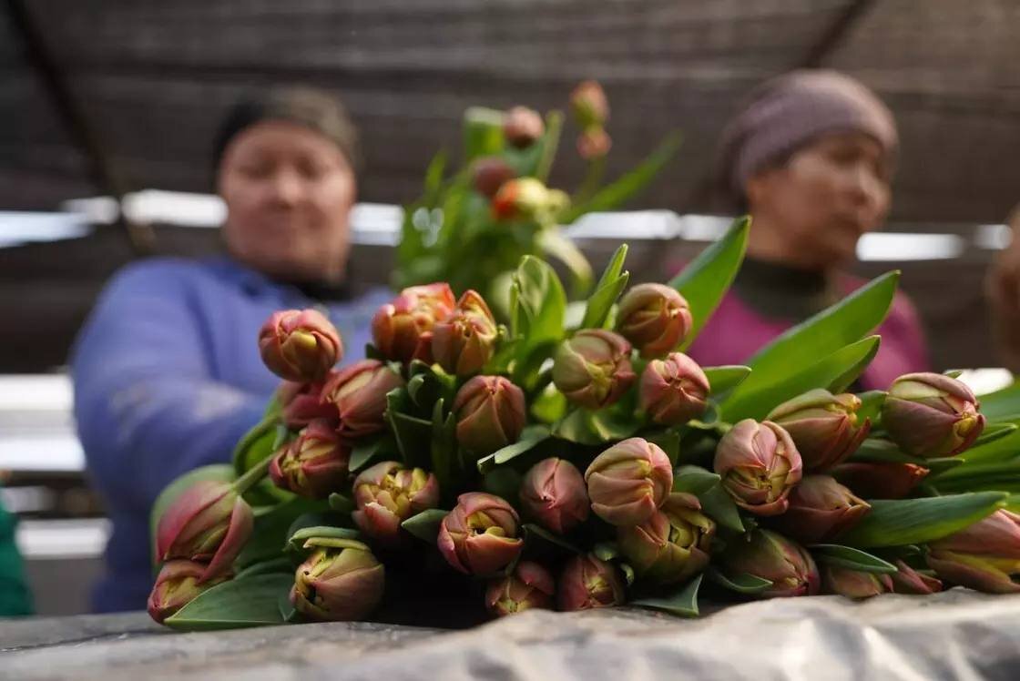 Сейчас каждый день срезают по 300 тысяч тюльпанов. При этом сбор "урожая" – самый трудоемкий процесс. В теплицах трудится порядка 200 человек, преимущественно люди старшего поколения. Только на зарплату супруги тратят около миллиона тенге в день. Плюс траты на электроэнергию и газ.