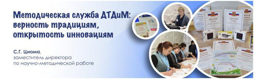 Методическая служба ДТДиМ на современном этапе представляет собой гибкий, живой организм, чутко реагирующий на изменения в социуме. Каждый сотрудник – энтузиаст своего дела, профессионал, стремящийся ежедневно вносить вклад в обновление и совершенствование образовательного процесса Дворца. Методическая служба – мастерская, где доводятся до совершенства педагогические идеи, профессиональные таланты, где умеют мечты воплощать в жизнь.