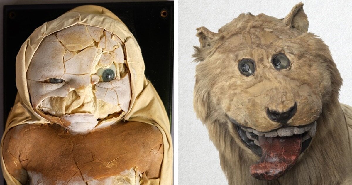Когда мы слышим слово «музей», то, как правило, в голове возникают классические экспонаты, скучный голос экскурсовода, да и вообще что-то такое, что навевает смертную скуку. Но музеи всего мира решили разбить в пух и прах этот миф и поделились своими самыми страшными, странными и необычными экспонатами. Там скукой даже и не пахнет, а вот желание посетить некоторые из музеев появляется тут же! Музей замка Грипсхольм, Швеция В 1731 году алжирский дей подарил королю Швеции живого льва. Когда лев умер, то его набили и сделали чучело. Однако местный таксидермист никогда до этого не видел настоящего льва! Музей «Страха и чудес», Альберта, Канада Этот экспонат относится к началу 19 века и представляет собой восковую голову ребёнка, Германия. Манекен много лет хранился лицом вниз на отапливаемом чердаке, из-за этого черты лица сплющились и превратились в рыло. Пожалуйста, наслаждайтесь. Североамериканский центр снежного человека, Боринг, штат Орегон Это копия первого отпечатка ягодиц снежного