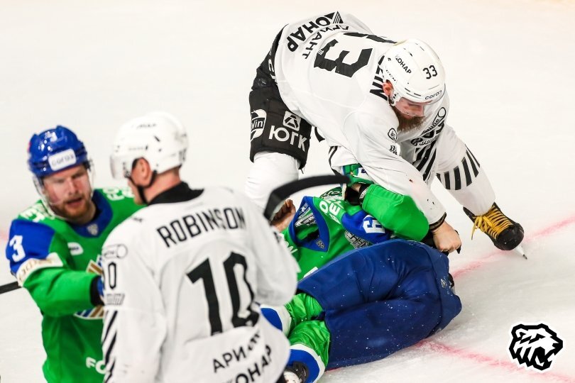 Вторая игра серии первого раунда плей-офф Кубка Гагарина «Салават Юлаев» - «Трактор» (4:1) запомнилась сразу несколькими кулачными поединками. Все началось в середине третьего периода со стычки между защитником челябинского клуба Альбертом Яруллиным и форвардом «Салавата» Данилом Алалыкиным. Спустя мгновение отношения решили выяснить Михаил Котляревский и Данил Башкиров. Затем нападающий «Трактора» Бадди Робинсон одним ударом уложил на лед капитана уфимцев Григория Панина и сразу же решил померяться силами с Алексеем Василевским. Посмотреть видео По итогу арбитры выписали Робинсону два 20-минутных дисциплинарных штрафа и два 5-минутных штрафа за драку. Остальные участники этого ледового побоища подверглись меньшим санкциям: Альберт Яруллин - четыре минуты, как и Даниил Алалыкин, у Михаила Котляревского - 17 минут, аналогично и у Алексея Василевского. Малым штрафом наказан Александр Шаров и Джек Родевальд, который вдобавок получил большой штраф за драку. За океаном особый интерес вызвал