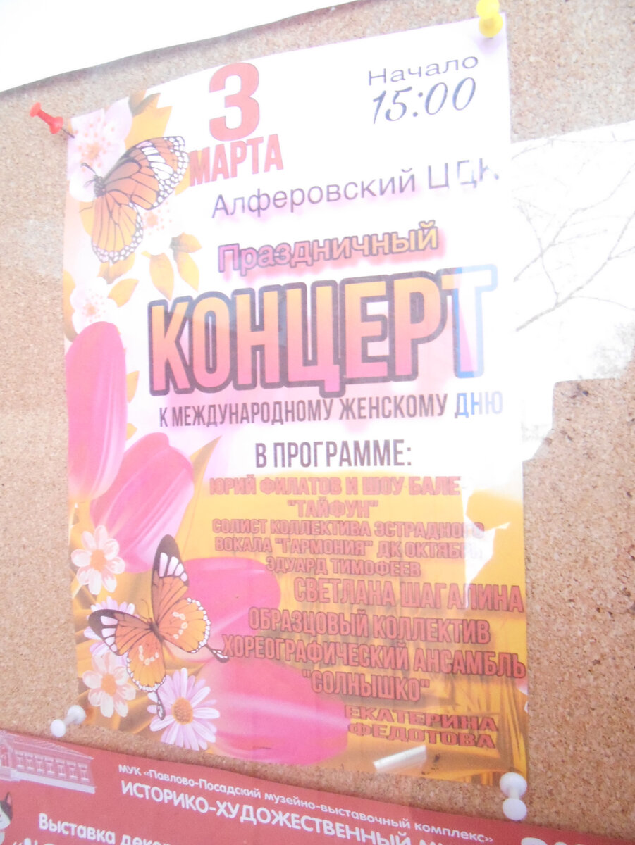 Чтобы сравнить московские и подмосковные культурные мероприятия мы поехали на дачу, чтобы отпраздновать 8 марта в местном Доме культуры - деревня Алферово, Павлово-посадский район. Как раз и повод случился Алферовский ЦДК даёт концерт 3 марта. Ни кого из заявленных участников не знаем, ну и пофиг, мы не за брэндами и не за трендами идём, идем развлекаться и тусоваться.