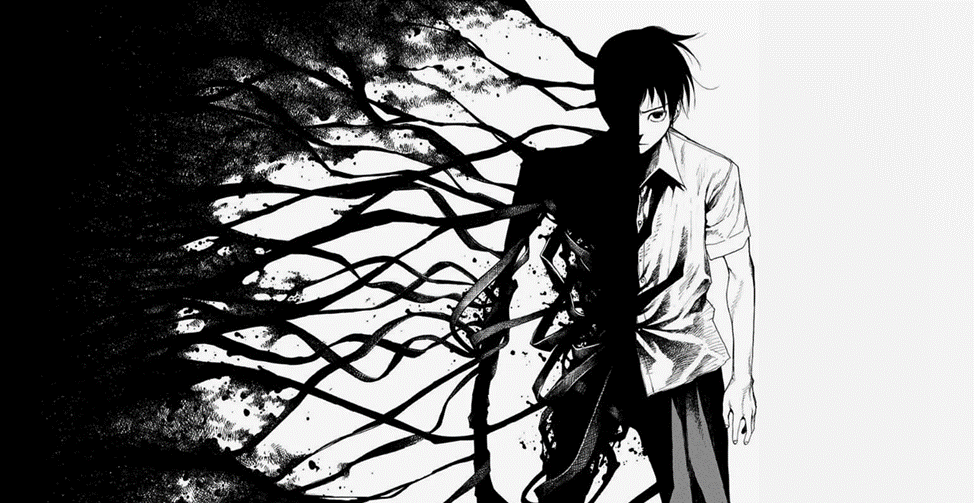 Однако не всё так просто, второе что меня зацепило - мистика, окутанная вокруг этого бессмертия – невидимая сущность, подобная смерти, которая преследует главного героя и помогает ему бежать от людей. Неконтролируемое существо дающие «новую жизнь» и оберегающее своего владельца или же кто-то на другом плане существования, поддерживающий жизнь в ГГ, преследующий свои мотивы. По степенно, завеса тайны вокруг полулюдей начнет открываться, а к концу манги ты получишь научно-фантастическое объяснение природы этого проклятия/силы.